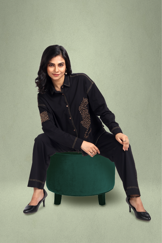 Jacquard Embroidered Pant Coord Set - Black
