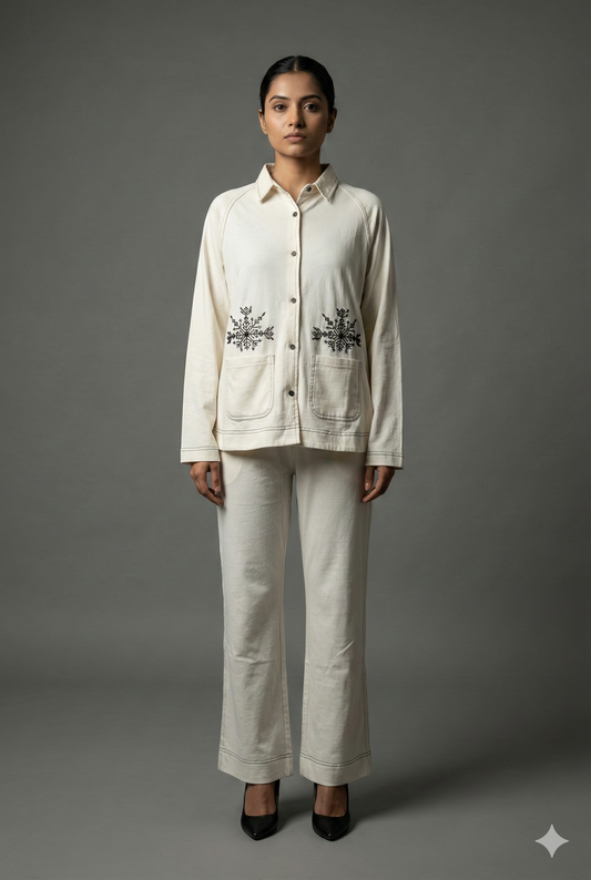 Jacquard Embroidered Pant Coord Set - Ink