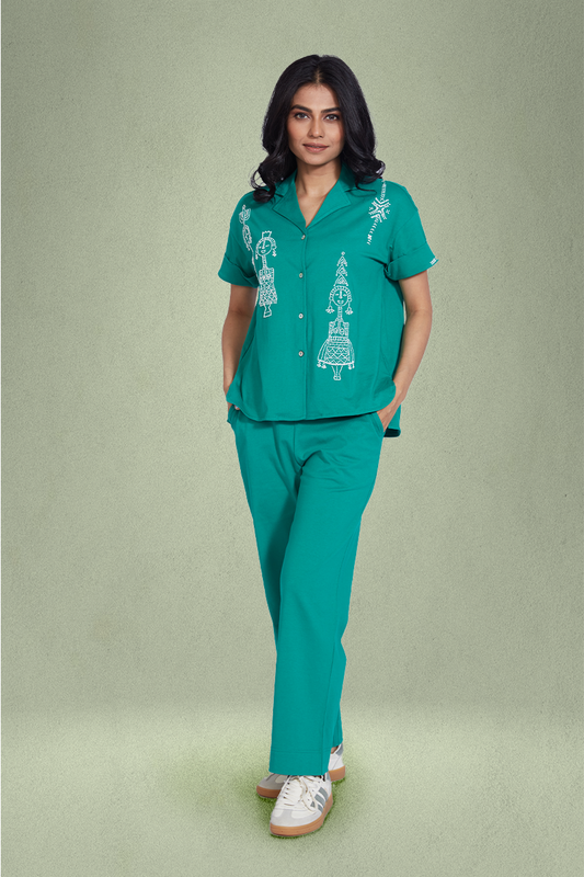 Dragonfly Twin Button Shirt Coord Set - Sea