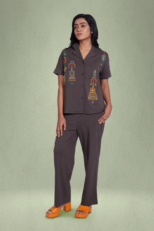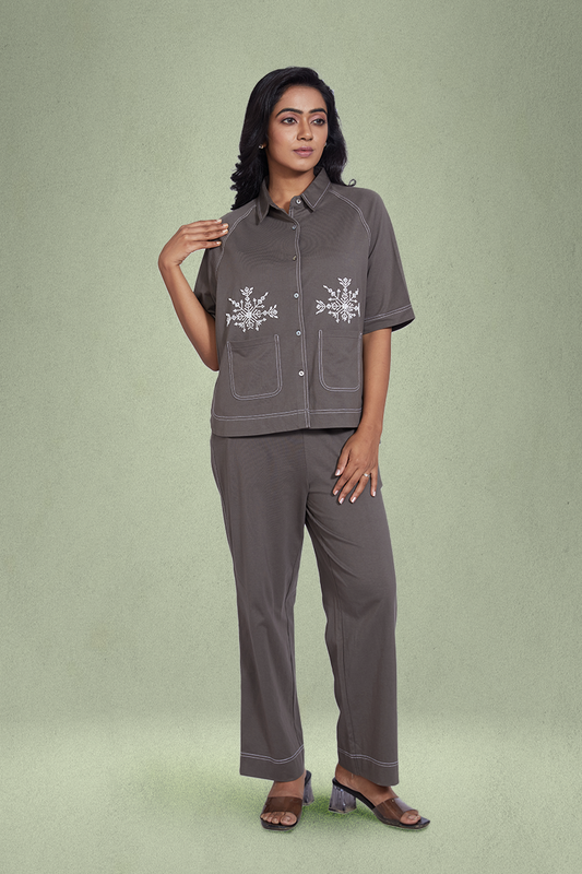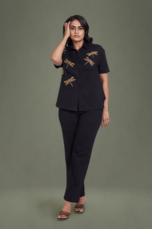 Dragonfly Twin Button Shirt Coord Set - Sand