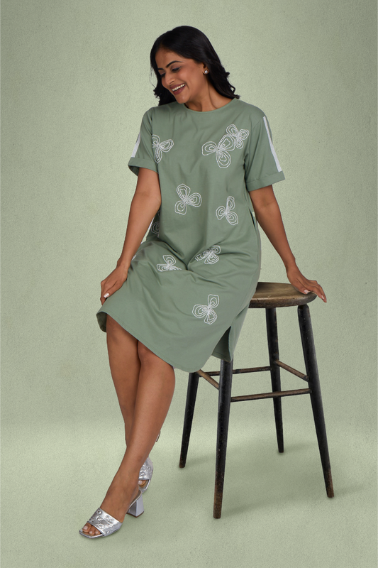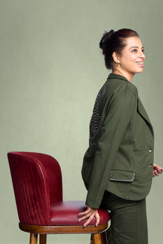 Stripes Front Coord Set With Flared Pants - Forest Green